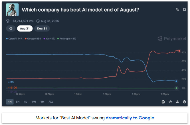 Early feedback was rocky. Users flagged basic errors in math, counting, and image recognition. Pro users criticized losing model selection controls, with some launching petitions to bring back earlier versions. Most dramatically, a poll flipped from OpenAI leading with 75% to Google taking the top spot, with OpenAI falling to just 14%, all within an hour.
