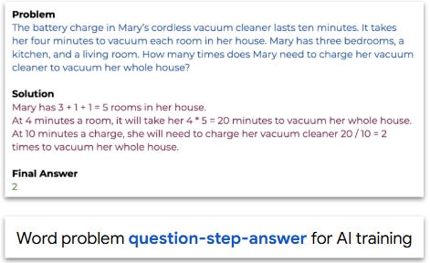 Here’s an example: In 2024, OpenAI wanted to improve GPT-3’s ability to solve math word problems. It had authors write 8,500 grade school exercises along with step-by-step instructions and final answers. They fed these examples into the model, yielding significant improvements in its answers.