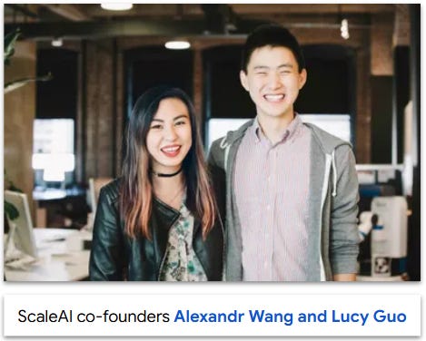 In 2015, 17 year-old MIT freshman Alexandr Wang, met 21 year-old Carnegie Mellon dropout Lucy Guo while working at Quora. They bonded over a shared passion for technology and joined YCombinator with a business idea: an “API for Humans” that would connect companies to workers for training AI. They set up shop in an investor’s basement and grew rapidly, becoming a billion dollar “unicorn” in 2019 on the way to today’s $29 billion valuation.