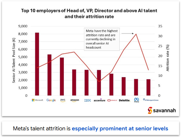 Talent: Despite salaries exceeding $2 million per year, almost 80% of the original Llama team has left the company. Mark Zuckerberg has stepped up recruiting efforts, making nine-figure offers and personally recruiting top-tier candidates. This deal will offer recruits the chance to work at a new, high-profile “superintelligence” division with direct access to Wang and Zuckerberg.