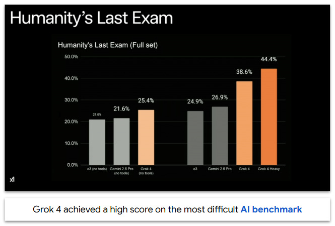 This controversy came at a brutal time for xAI, which released a major upgrade to Grok 4 on Thursday. The launch was a mixed success: on one hand, the model dominated competitors on benchmarks including “Humanity’s Last Exam”, a 2,500 question PhD-level exam that few humans can even attempt.