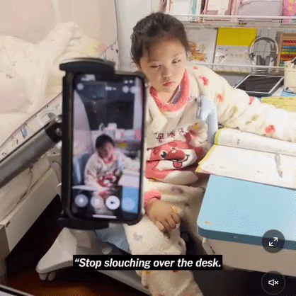 After dinner, Lu Qijun puts her phone on her son’s desk as he starts his homework. She turns on an AI tutoring service named Dola. It answers his questions, explains his mistakes, tells him to sit up straight and stop fidgeting.