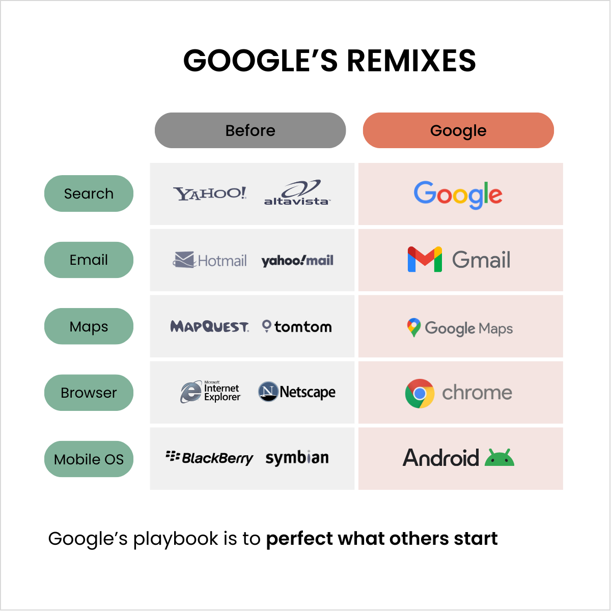 If this sounds familiar, it should. Google Search wasn’t first (remember Yahoo?), nor was Gmail (Hotmail anyone?) or Maps (here’s looking at you, MapQuest). Google rarely invents a category, but it often perfects it.